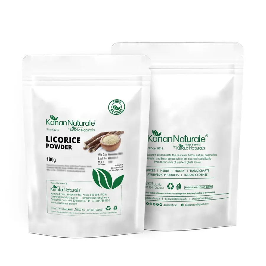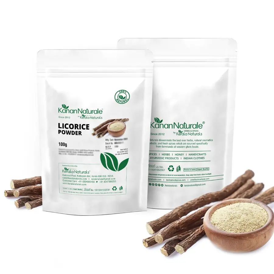 Kerala Naturals provides 100% natural and chemical free licorice powder with no additives, synthetics and other harsh metals. It helps to maintain hair shine and effective on skin to maintain glow.