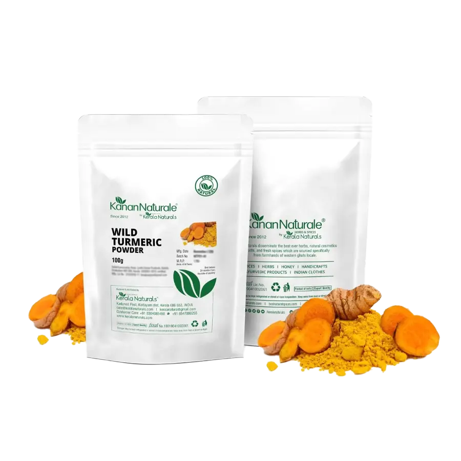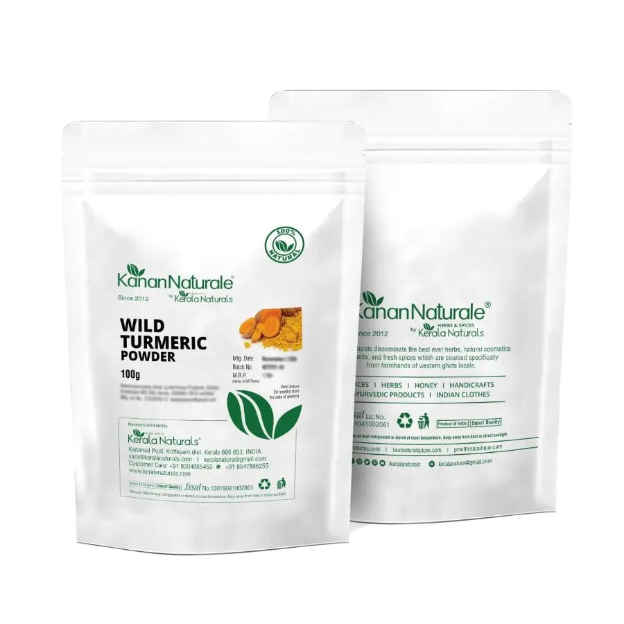 Wild Turmeric or Kasturi powder used for glowing skin. Wild turmeric is an important ingredient in any ayurvedic skin care product. It has anti-oxidants, anti-inflammatory, anti-septic and anti-bacterial properties. The yellow pigment in the turmeric makes the skin brighter. It also helps in removing facial hair and pimple marks, when used for a longer time. It reduces sun tan on skin during summer and improves your complexion. Regular use of wild turmeric makes our skin look younger.