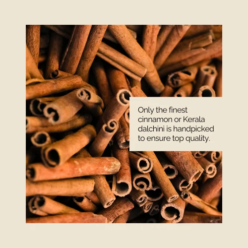 Our cinnamon, or Dalchini, is sourced directly from Idukki, Kerala. The region’s pristine environment nurtures the finest cinnamon, ensuring a top-quality product that enhances your meals.